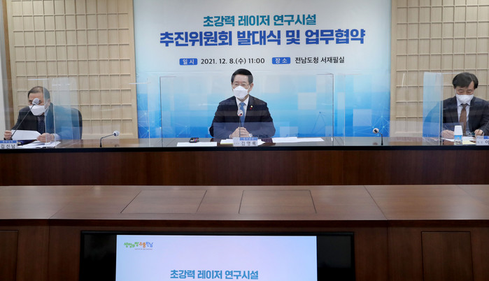 [세계로컬타임즈 김명진 기자] 전라남도는 8일 도청에서 레이저 관련 산학연 등 다양한 분야의 인사들이 참여한 ‘초강력 레이저 연구시설 추진위원회’ 발대식을 열어 공감대 확산과 지지 기반 구축에 본격 나선다고 밝혔다.