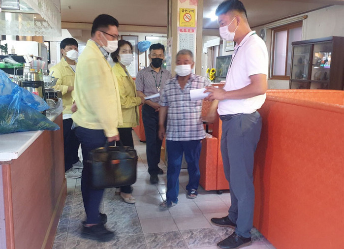 | ▲ 진도군이 코로나19 집단감염과 확산 방지를 위해 식품·공중위생업소에 대한 집중 방역 점검을 실시하고 있다(사진=진도군청 제공) |