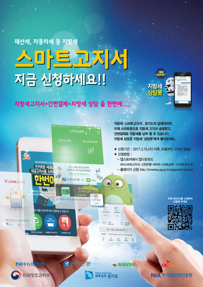 앱스토어에서 스마트 고지서를 검색하고 농협은행 NH스마트고지서, SK텔레콤 T스마트청구서, 네이버-신한은행 스마트납부 앱 중 하나를 설치한 후 지방세고지서 신청을 하면 된다.