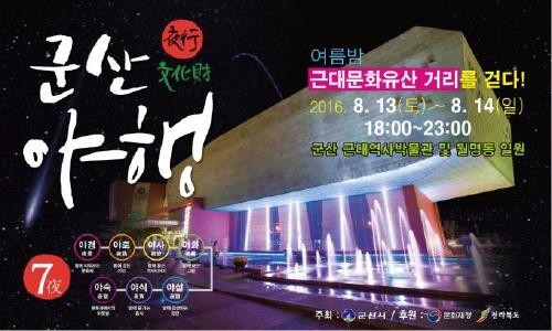 ▲야로(夜路, 밤에 걷는 아름다운 문화유산의 거리) ▲야사(夜史, 몸과 마음으로 느끼는 역사 이야기) ▲야화(夜花, 한여름 밤에 보는 문화유산의 정취) ▲야설(夜說, 밤에 펼쳐지는 문화공연) ▲야경(夜景, 밤에 비춰보는 아름다운 군산의 문화유산) ▲야식(夜食, 밤에 즐기는 맛의 거리) ▲야숙(夜宿, 문화재에서의 하룻밤)이 진행된다.