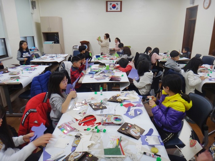 | ▲ 대전 토요박물관학교에서 어린이들이 만들기 수업을 듣고 있다. |