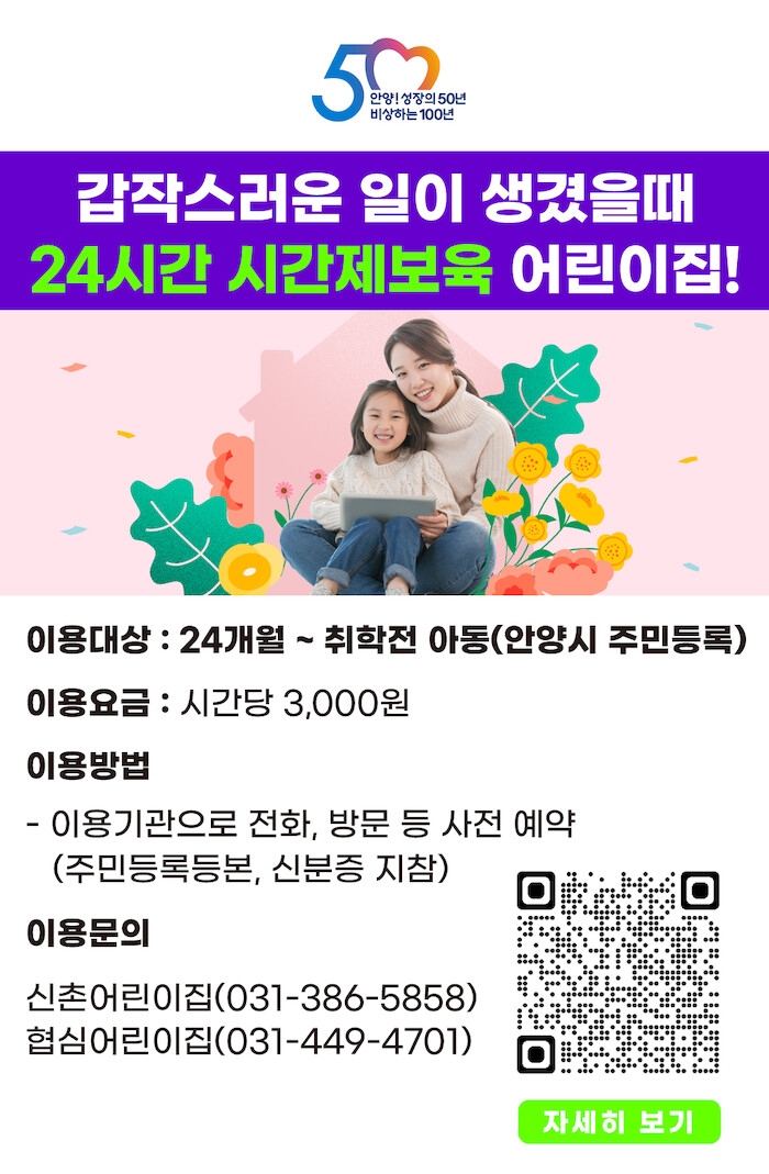 | ▲24시간 시간제 보육 어린이집 이용 안내 포스터.(사진=안양시) |