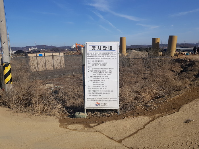 또 다른 현장은 신천-보통천 차집관로 개량공사를 진행하는 곳으로, 시공사는 주영종합건설, 감리사는 삼안·극동엔지니어링·케이에스엠기술이며 공사 발주청은 시흥시 하수팀이다. 이 현장 역시 세륜기 등 물차 없이 불법으로 농지를 야적장으로 사용하고 있었으며, '수시점검 하고 있다'는 환경과 답변은 실행되고 있는지에 의문이다.