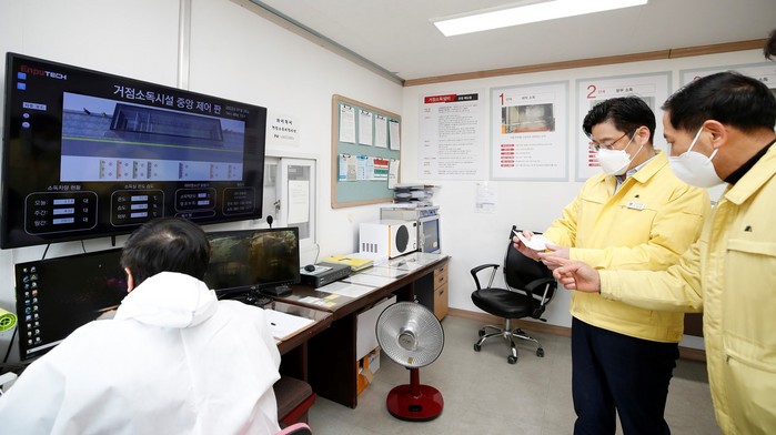 | ▲오 대행은 현장관계자들을 점검하고 철저한 방역을 주문했다. |