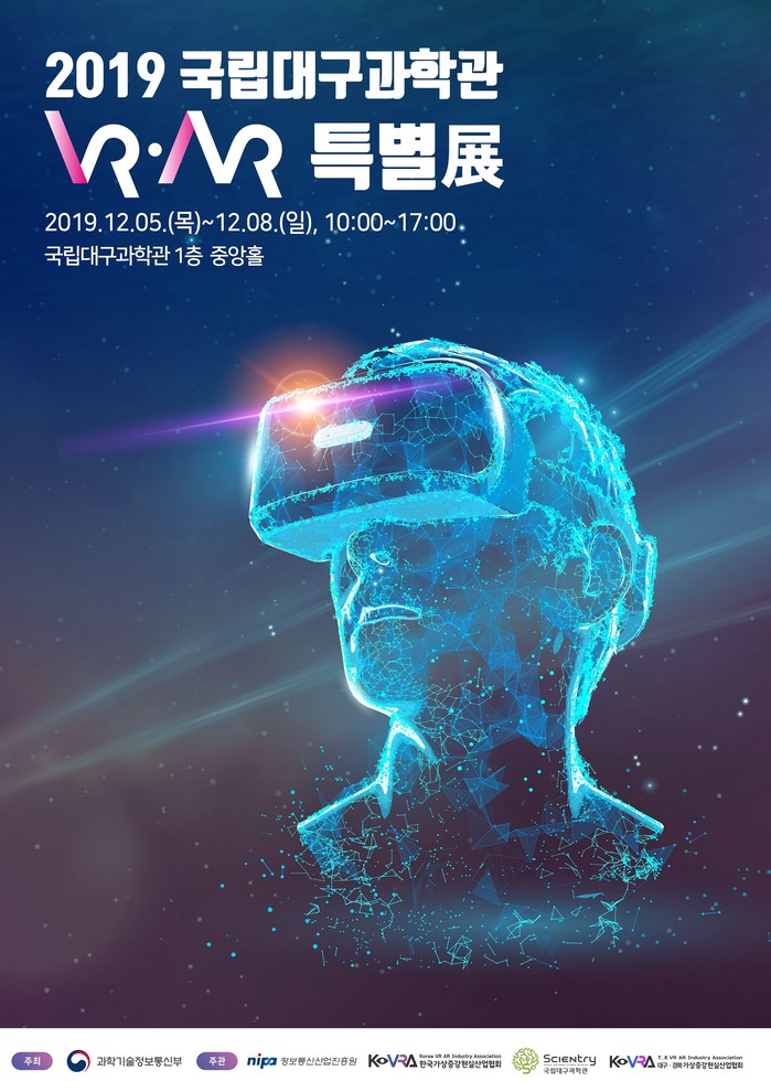 과학기술정보통신부가 주최하는‘2019 국립대구과학관 가상현실·증강현실(VR‧AR) 특별전’은 ‘전국 과학관 순회 전시’의 네 번째 특별전으로 국내 증강현실(AR)‧가상현실(VR) 전문 기업과 한국가상증강현실산업협회, 대구·경북가상증강현실산업협회가 참여한다.