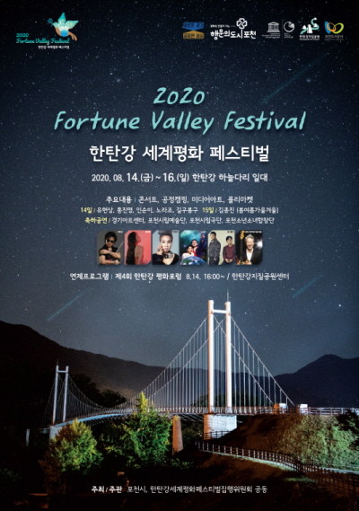 [세계로컬타임즈 신선호 기자] 포천시는 한탄강 유네스코 세계지질공원 ‘하늘다리’ 일원에서 2020 포춘밸리 페스티벌(프로젝트명: 한탄강 세계평화 페스티벌)을 개최한다.