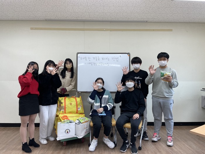 새말청소년문화의집 봉사동아리 청소년 11명이 기관에 모여 직접 크리스마스카드를 작성하고, 방한용품과 함께 간식꾸러미 80개를 만들었다. 만들어진 선물은 12월 15일 관내 아동복지시설과 노숙인 지원센터에 전달했다.