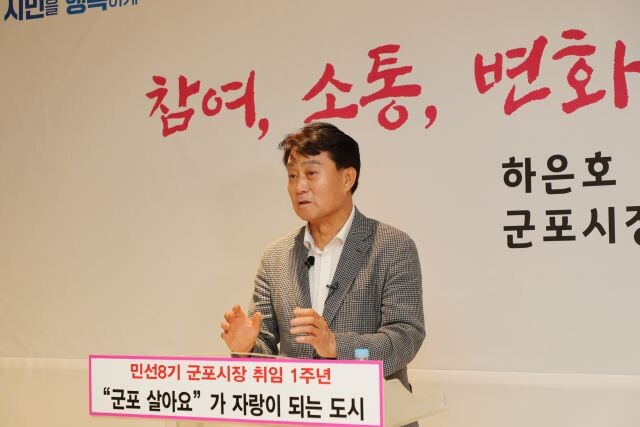 | ▲ 하은호 군포시장 취임 1주년 기자회견 모습(사진=군포시) |