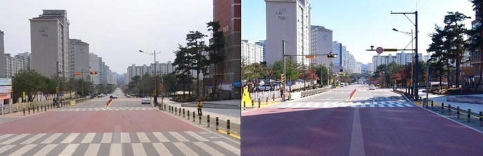 | ▲만대초등학교 앞 카메라 설치 전(좌)/후(우) 비교사진 (사진=원주시) |