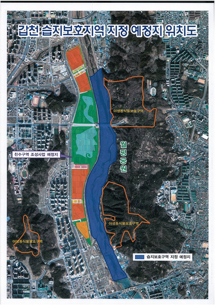 대전시는 지난 2012년 갑천 자연하천구간에 대한 국가습지보호지역 지정 신청을 했으나, 하천은 습지 대상에서 제외된다는 이유로 무산되기도 했다.