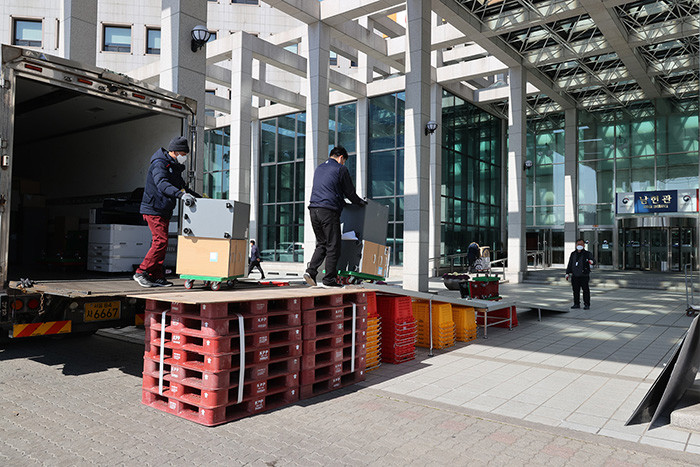 [세계로컬타임즈 민순혜 기자] 18일 기상청 대전 이전을 위한 첫 이사 차량이 정부대전청사에 도착하면서 기상청 대전 이전이 본격 시작됐다.