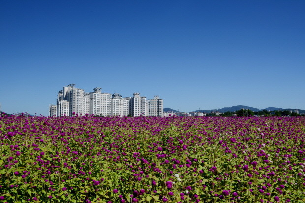 | ▲전국 최대 규모의 천일홍 꽃밭 조성지인 나리공원 일원 모습.<사진제공=양주시청> |