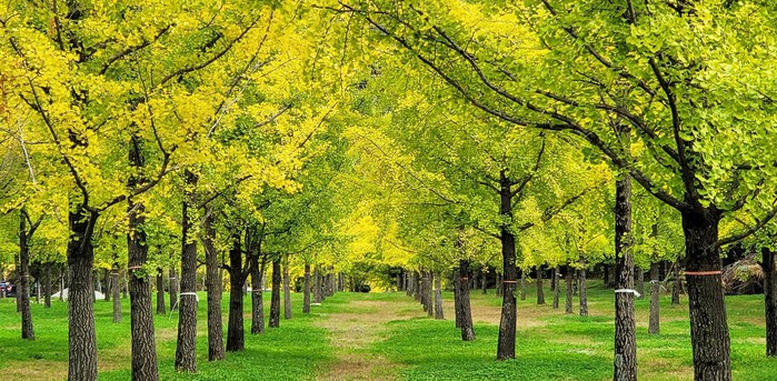 은행나무 숲은 5m 간격으로 은행나무 2,000여 그루가 줄을 맞춰 심어져 있어 매년 가을이면 노랗게 물든 은행잎이 장관을 연출하고 있다.