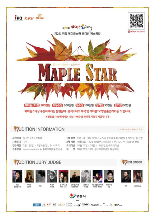 가수 'KCM'과 '골드'가 이 날 정읍시측으로 부터 올해 메이플스타 홍보대사로 위촉됐다. 또 심사위원장에 KBS 김광필 국장을 비롯 심사위원으로 ‘모두’의 오디션 하승한 대표, IHQ컴퍼니 최영단 대표, 이성준 프로듀서 등 4명이 위촉됐다.