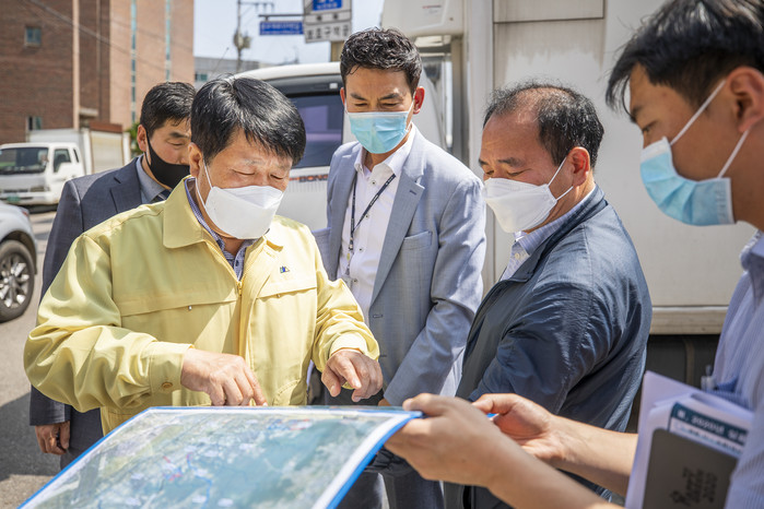 | ▲ 박형우(왼쪽) 구청장은 장기미집행 도시계획시설 현장방문 해 관계자들과 점검 하고 있다. (사진=계양구 제공) |
