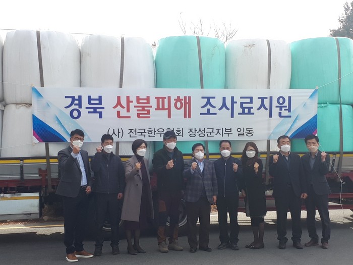 김재영 회장은 “대규모 산불 피해로 조사료가 소실되는 등 가축들에게 먹일 것이 없다는 소식을 듣고 마음이 너무 아팠다”며 “같은 축산인으로서 가만히 있을 수 없어 회원들과 함께 조사료를 십시일반 모아 전달하게 됐다”고 말했다.