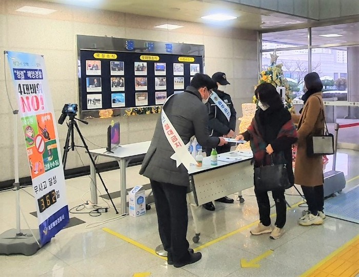 [세계로컬타임즈 김명진 기자] 목포해양경찰서는 연말연시를 맞아 청렴한 공직 문화 확산을 위해 4대비위 근절 어깨띠를 착용하고 출근하는 직원들에게 청렴마스크를 배부하며 자체 사고 예방 캠페인을 펼치고 있다.