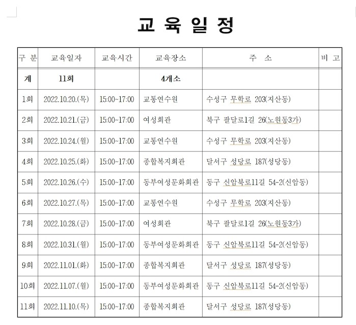 교육참가 신청은 해당 교육일자 2일 전까지 대구시 민원.공모 홈서비스에서 신청할 수 있다.
