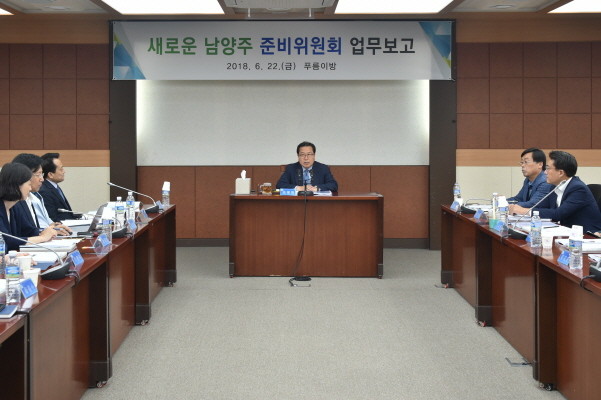 | ▲ 조광한 남양주시장 당선인(가운데) 인수위 업무보고 장면.<사진제공=남양주시> |