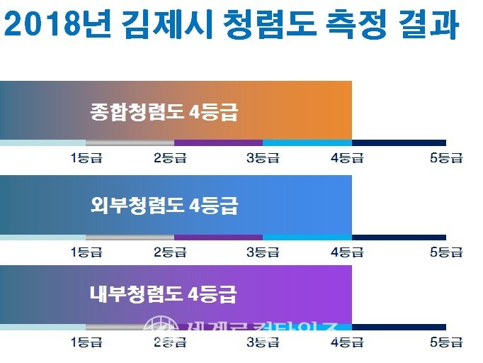지난 12월 5일, 권익위가 공개한 공공기관 청렴도 측정결과에 따르면 김제시는 내부청렴도, 외부청렴도, 종합청렴도 모두 4등급을 기록, 최하등급인 5등급을 간신히 모면했다.