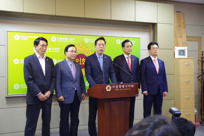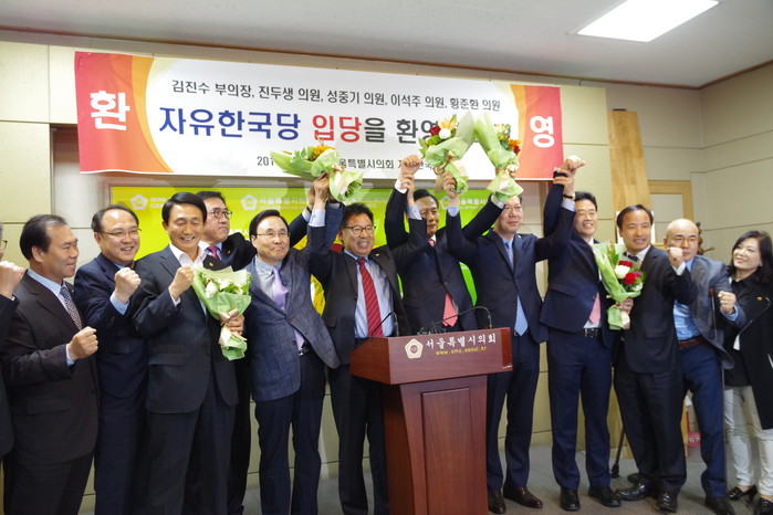 이날 서울시의회에서 김진수(부의장, 강남2), 진두생(송파3), 성중기(강남1), 이석주(강남3), 황준환(강서3) 바른정당 의원 5명이 당을 탈당하고 자유한국당에 입당하겠다는 기자회견을 열었다.