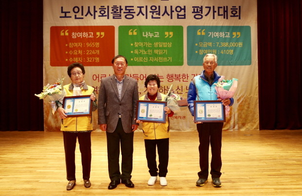 행사에서는 문화공연을 비롯해 성과보고 및 사업안내, 그리고 한옥순(청평면), 박상운(북면), 정송자(가평읍) 어르신 등 3명에 대한 군수표창 등을 통해 노인들의 노고를 위로, 격려하고 우수한 일자리 참여자를 선발 시상했다.