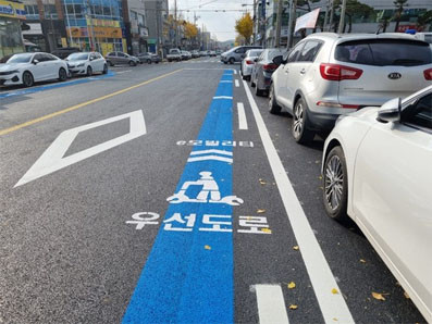 | ▲영광읍에 설치된 e-모빌리티 우선도로(사진=영광군) |