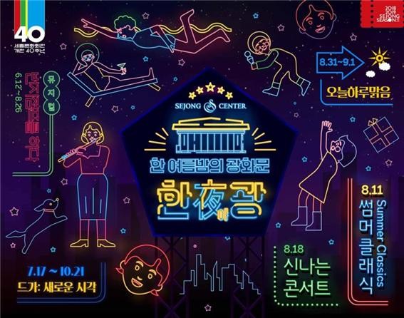 세종문화회관 사장(직무대행 서정협)은 "광화문의 청량한 밤공기와 함께 다양한 문화생활을 즐김으로써 뜨거운 열기, 무더위로 지친 우리의 삶이 잠시나마 힐링이 되고 새로운 활력을 찾을 수 있는 기회가 되길 바란다"고 전했다.
