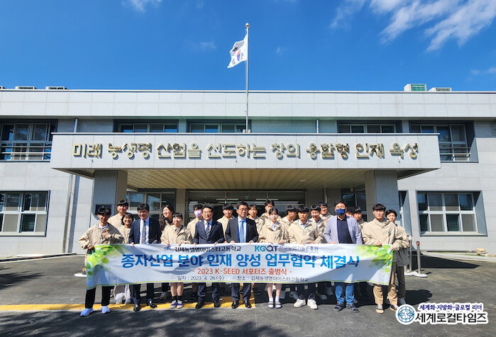 [세계로컬타임즈 조주연 기자] 전북 김제시가 김제 농생명마이스터고에서 서포터즈로 활동하는 18명의 학생과 농생명마이스터고 관계자, 한국농업기술진흥원(이하 농진원) 등과 같이 K-Seed 서포터즈 출범식을 개최했다.