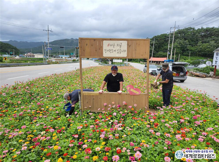 [세계로컬타임즈 조주연 기자] 전북 부안의 한 도로변 포토존에 백일홍이 만개한 가운데 관광객을 위한 정비가 한창이다.