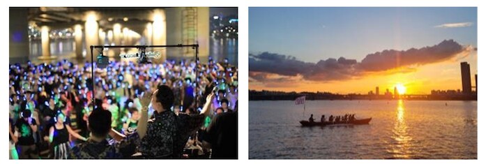 | ▲한강 페스티벌 프로그램의 일부였던 '한강무소음DJ파티'(사진 왼쪽)와 '한강킹카누물길여행' (사진=서울시) |