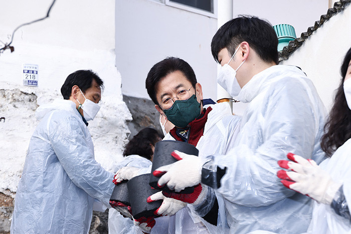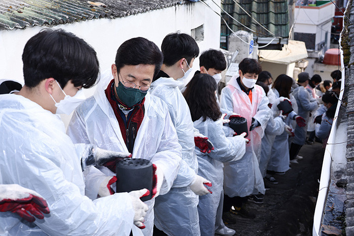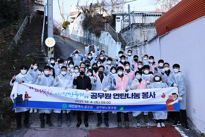 [세계로컬타임즈 민순혜 기자] 허태정 시장과 시 공무원 및 공무원노동조합 소속 직원 50여명은 4일 부사동 일원에서 ‘따뜻한 대전만들기 연탄나눔’ 봉사활동을 펼쳤다.