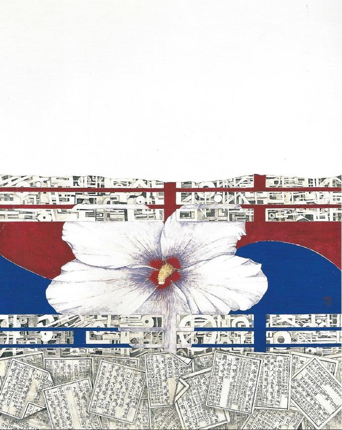 | ▲ 나라향기(무궁화+훈민정음+태극기+애국가) 130×165cm, 화선지에 혼합재료, 2008 |