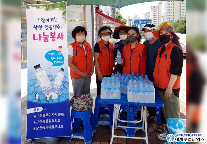 모현동 통장협의회가 닷새동안 천병의 얼음생수를 통행인에게 무료로 제공했다.