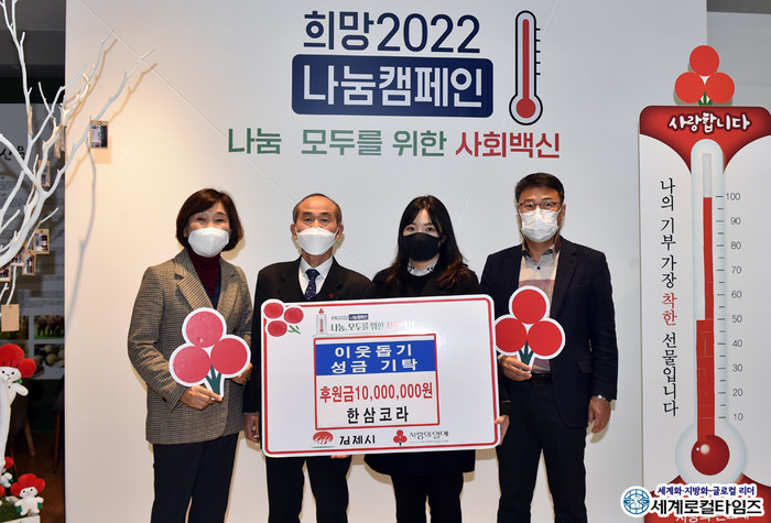[세계로컬타임즈 조주연 기자] 전북 김제의 한삼코라㈜가 이웃돕기 성금 1000만 원을 기탁했다.