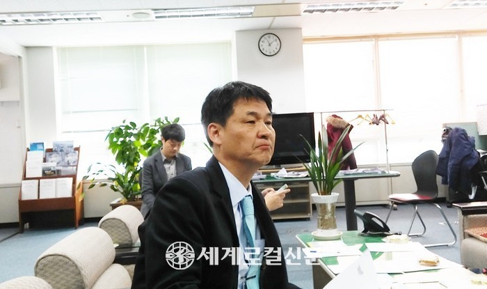 | ▲김근종 대전시설관리공단 이사장이 대전시청 기자실에서 기자 질문에 답변하고 있다. 사진= 오영균기자. |