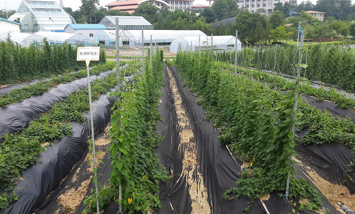 | ▲ 충청북도농업기술원이 위축된 백수오 소비 확대를 위해 안전하고 품질 좋은 백수오를 생산할 수 있는 유기재배법을 개발했다. 사진은 도 농기원이 시험재배하는 백수오 모습.<사진제공=충북도청> |