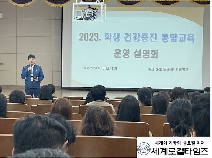 도교육청은 이날 2023년 학생건강증진 통합교육 운영 방향 안내 및 광양중진초등학교의 ‘건강체중 도전 비탈길 프로젝트’ 운영 사례 나눔을 통해 다양한 교육활동 운영 방안을 설명했다.
