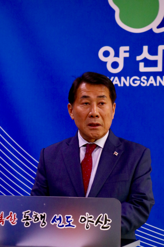 | ▲ 나동연 양산시장이 9일 3선 도전을 공식 선언하고 있다. |
