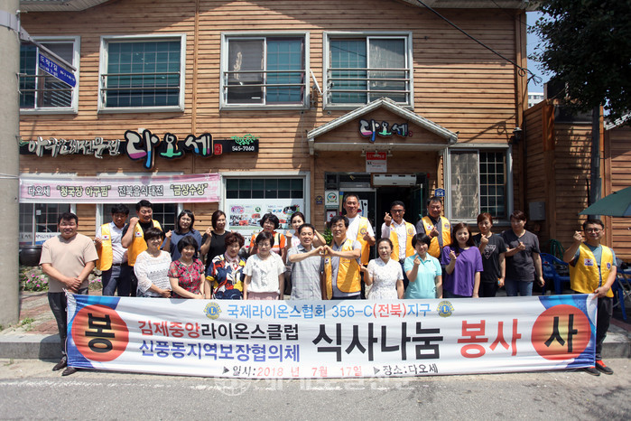 김제중앙라이온스클럽은 지난달 18일 신풍동지역사회보장협의체(이하 신풍동지사협)와 '매월 60명 홀로어르신 무료 점심대접'을 위한 업무 협약을 체결한 바 있다. 이번 식사봉사는 업무협약의 첫 행보다.