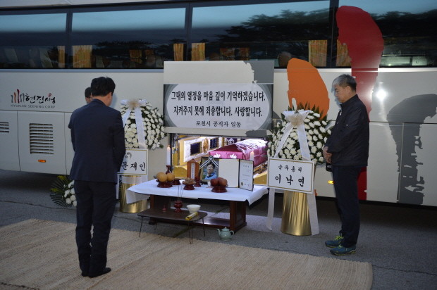 이날 모인 동료들은 “故 한 팀장님은 항상 모든 일에 열정적이었으며 특히 수의사로서 구제역과 AI 등 각종 가축재해 방역에 몸을 아끼지 않았던 직원으로 포천시의 축산업 발전을 위해 여러 일들을 꿈꾸던 사람이었는데 이렇게 일찍 보내게 돼 슬프다”며 “이제는 모든 짐을 내려두고, 편히 쉬기를 바란다”고 애도했다.