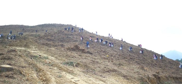 | ▲남양주시 민·관·군 200여명이 벌채 방제사업장에서 재선충병 방지를 위해 잔가지를 줍고 있다.<사진제공=남양주시청> |