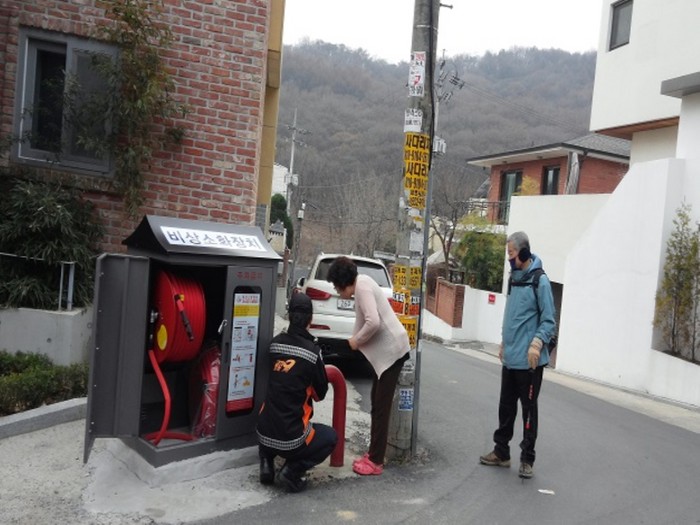 | ▲구리소방서 직원들이 주택가에 설치된 소방용수시설을 점검하고 있다.<사진제공=구리소방서> |