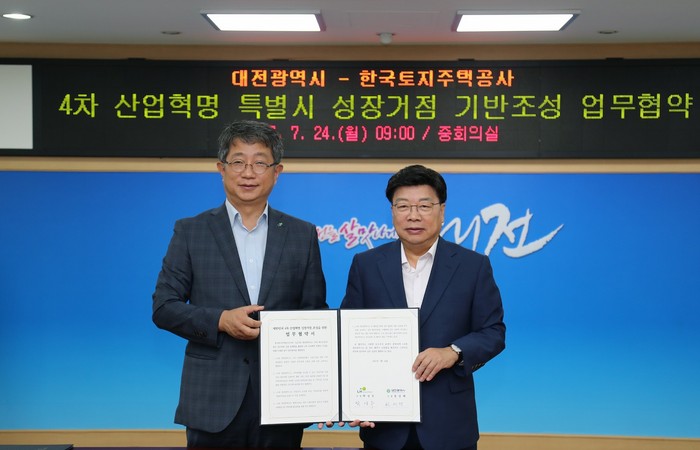 [세계로컬신문 오영균 기자] 대전시와 한국토지주택공사가 4차 산업혁명 특별시 기반 조성을 위해 업무협약(MOU)을 체결했다.
