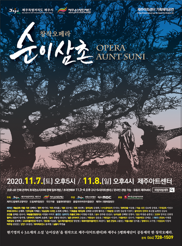 제주아트센터 강정호 소장은 “우리 센터는 2018년부터 오페라를 기획, 제작해 공연했고, 특히 올해는 아트센터개관 10주년을 기념해 제주의 아픈 역사인 제주4·3을 소재로 한 순이삼촌 창작오페라에 많은 관심을 부탁드린다”고 말했다.
