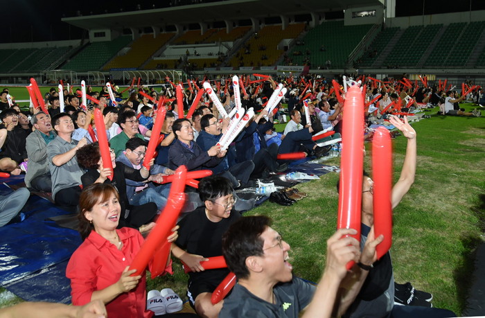 | ▲ 지난해 9월 1일 한일축구결승전이 열리자 경주시 시민운동장에서 시민 3천여명이 한국 승리를 기원하고 있다. (사진=경주시 제공) |