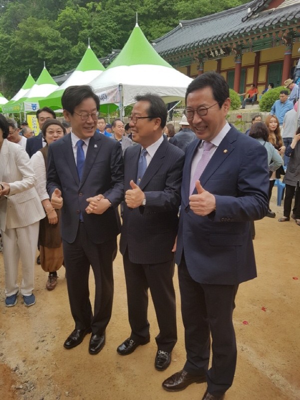 이날 법요식에는 민주당의 국회의장 후보로 선출된 문희상 국회의원, 이재명 경기도지사 후보, 김한정 국회의원도 자리를 함께 참석했다.