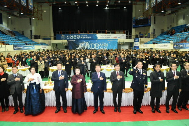 [세계로컬신문 고성철 기자] 경기도 구리시(시장 백경현)가 지난 3일 구리실내체육관에서 2017년 무술년(戊戌年)새해를 활짝 여는 신년인사회를 갖고 시민 모두가 한마음 한뜻으로 ‘행복 체감 지수’를 실질적으로 느낄 수 있는 ‘즐거운 변화, 더 행복한 구리시 건설을 위한 힘찬 도약을 염원하는 각오를 다졌다.