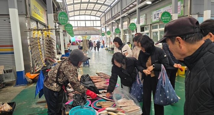 이날 행사에는 경제유통과장과 지도읍장, 군청 직원 등 30여 명이 참여해 상인들과 직접 소통하며 제수용품과 생필품을 구매했다.
