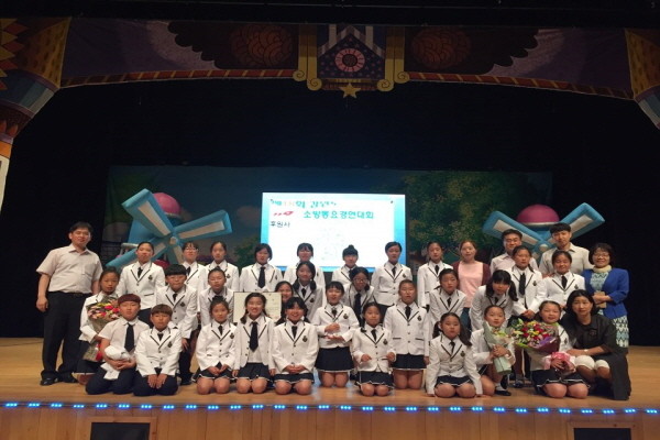 | ▲ 평창초등학교 합창단이 지난 29일 제18회 강원도 119소방동요 경연대회에서 금상을 차지한 후 기념촬영하고 있다.<사진제공=평창소방서> |